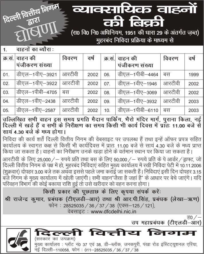 Auction Notice for Bawana and Narela Plots 26-6-07